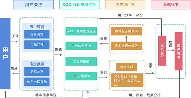 采用“平台+社交+内容+大数据”模式,构建O2O闭环消费生态圈