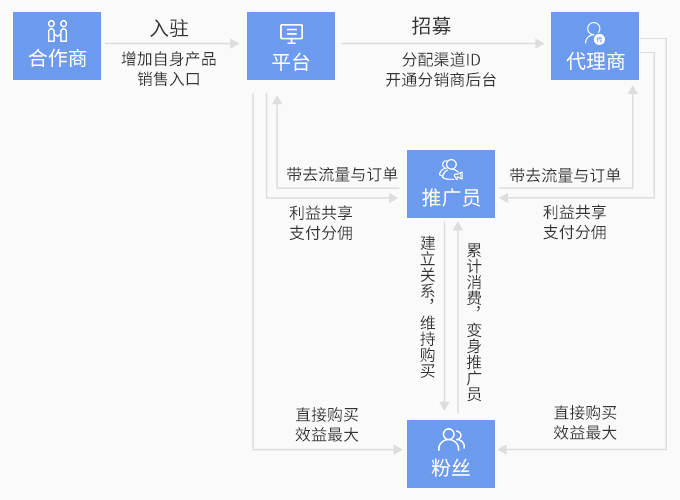 省去中间层层代理环节底价进货,借力平台售卖商品,获得盈利。